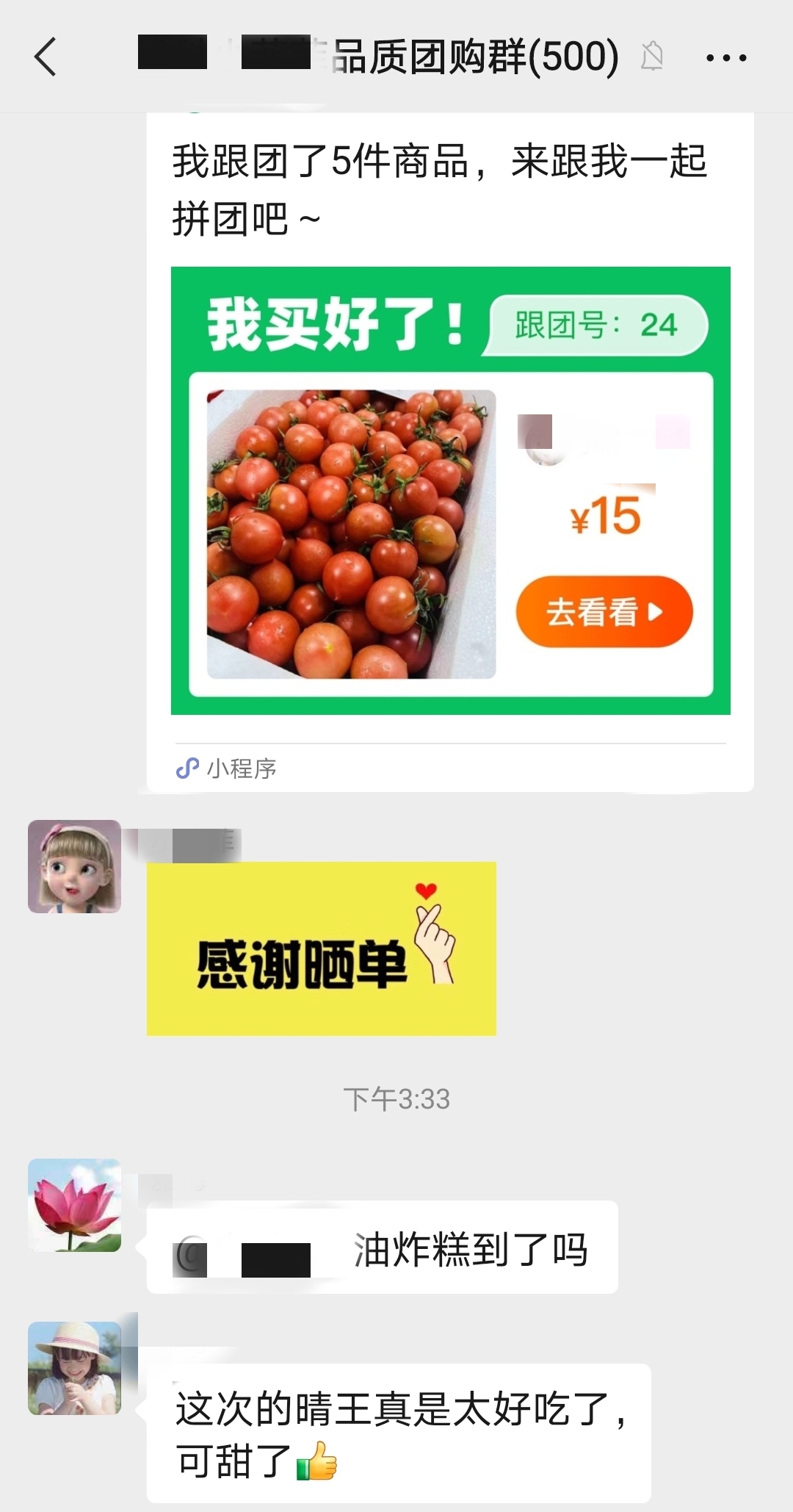 經過幾次團購體驗,趙女士對這種購物形式很滿意。“我買了幾次蔬菜、水果后,發現很新鮮,雖然有時也會有磕碰的情況發生,但只要第一時間反饋,都會得到退換貨。”