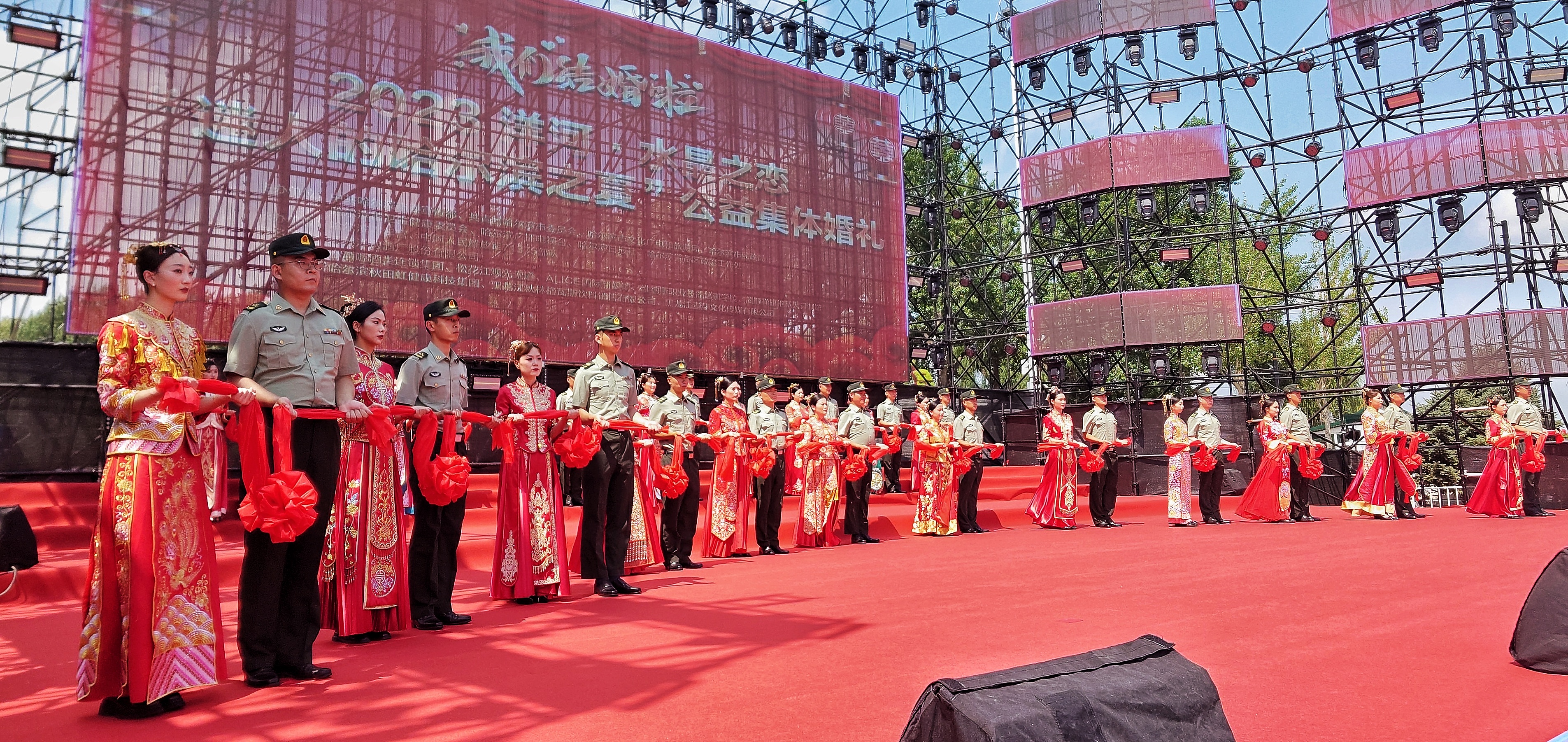 冷暖有相知,喜樂有分享;共量天地寬,共度日月長。7月29日,2023洋河·水晶之戀迷人的哈爾濱之夏公益中式集體婚禮在哈爾濱防洪紀念塔廣場舉行。參加婚禮的20位新郎來自中國人民解放軍某部隊,新娘來自山東、河南、內蒙古、江蘇、廣東、廣西、云南等12個省和自治區。