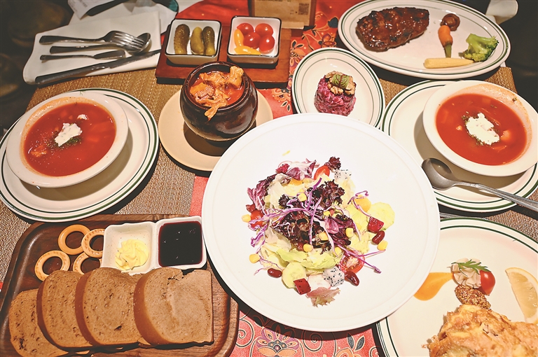 一碗紅菜湯、一片黃油大列巴、一串高加索風味烤肉、一杯鮮釀格瓦斯……