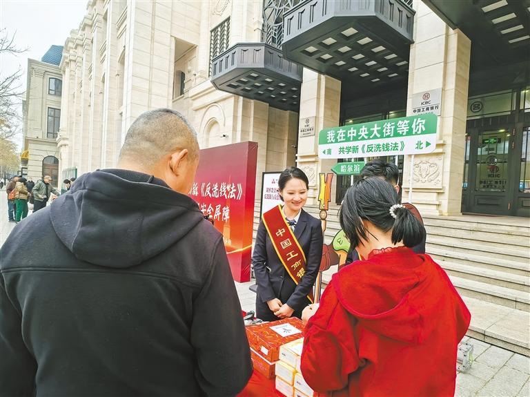 午后的中央大街,儼然成為生動的“反洗錢露天課堂”。工作人員手持宣傳折頁,結合“天價花束”“黃金代購”等真實案例,向過往群眾揭示洗錢風險;同時深入周邊商戶,講解移動支付安全要點,以貼近生活、通俗易懂的語言,將專業法律知識和真實案例轉化成群眾聽得懂、記得住的身邊事,傳遞溫暖細致的金融關懷,有效提升了公眾對反洗錢工作的理解、支持與自我保護能力。