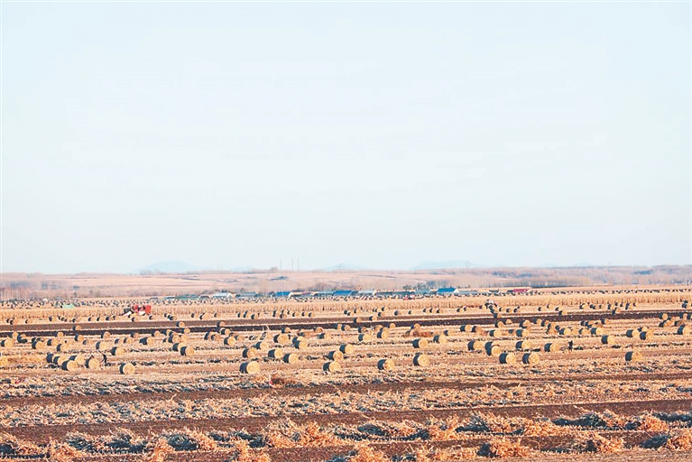 在慶安縣,部分秋收后的地塊進(jìn)行著秸稈還田作業(yè),與此同時(shí)。在慶安縣各鄉(xiāng)鎮(zhèn),隨處可見打好包的秸稈在田間待運(yùn)。