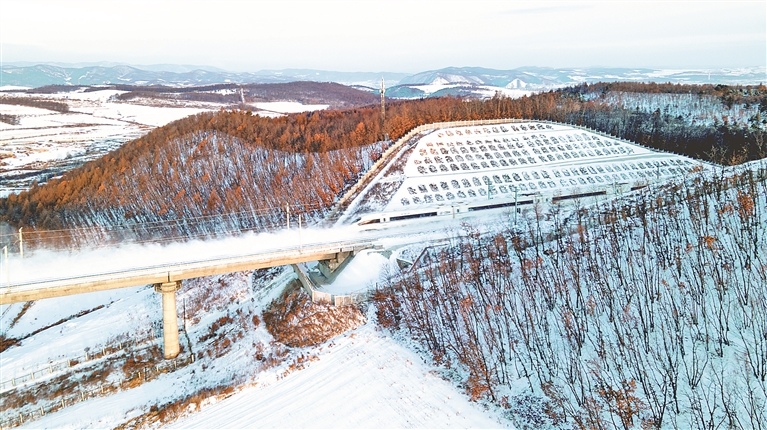 牡佳高鐵在風(fēng)雪中馳騁。原勇攝