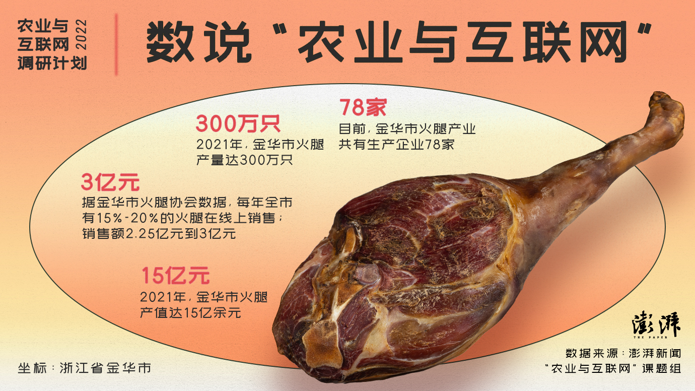 今年11月中旬,澎湃新聞農(nóng)業(yè)與互聯(lián)網(wǎng)課題組前往浙江省金華市調(diào)研,作為一個(gè)歷經(jīng)多年的傳統(tǒng)消費(fèi)品行業(yè),金華火腿產(chǎn)業(yè)的發(fā)展勢(shì)頭如何?又面臨哪些發(fā)展問(wèn)題?在電商時(shí)代,火腿產(chǎn)業(yè)如何滿足和適應(yīng)年輕人的消費(fèi)需求?產(chǎn)業(yè)未來(lái)轉(zhuǎn)型升級(jí)之路在哪里?