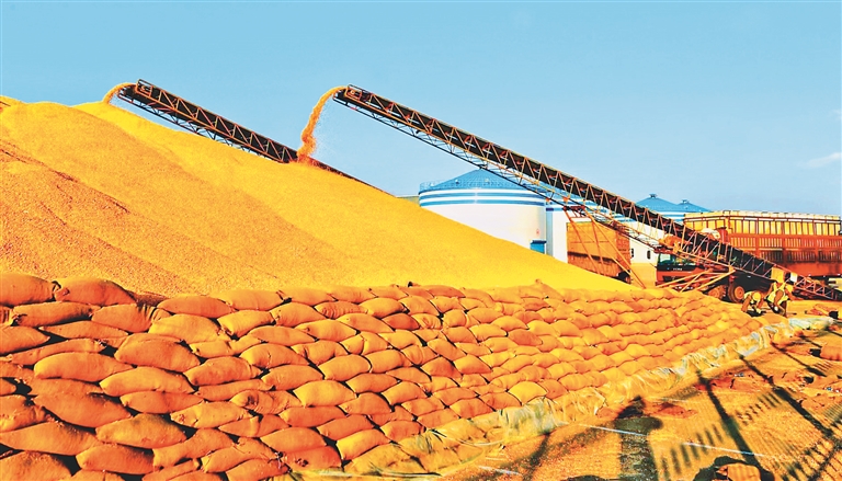 糧食入庫。吳永江 本報記者 吳樹江攝