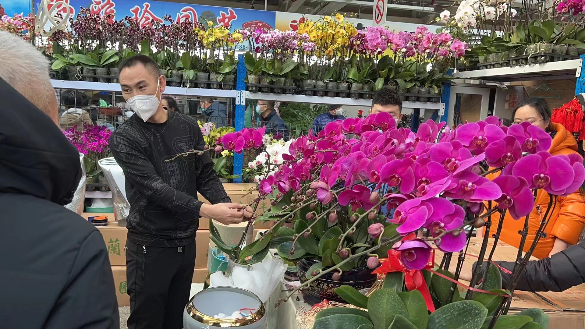 市民孫麗正和家人一起選購花品。“年前選購花卉,已經成為我家每年的固定動作。前幾年都是農歷二十八、二十九才來,許多商家都回家過年了,花品也不豐富,今年特意早幾天來,能好好挑選一下。”孫麗說,看著滿眼五顏六色的鮮花,她的心情也格外好。最終,孫麗購買了四支蝴蝶蘭和兩盆杜鵑花。