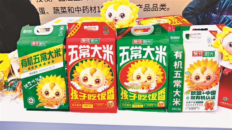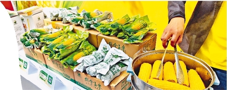 活動(dòng)現(xiàn)場(chǎng)亮相的鮮食玉米、五常大米、蒲公英茶。 見(jiàn)習(xí)記者 唐海兵攝
