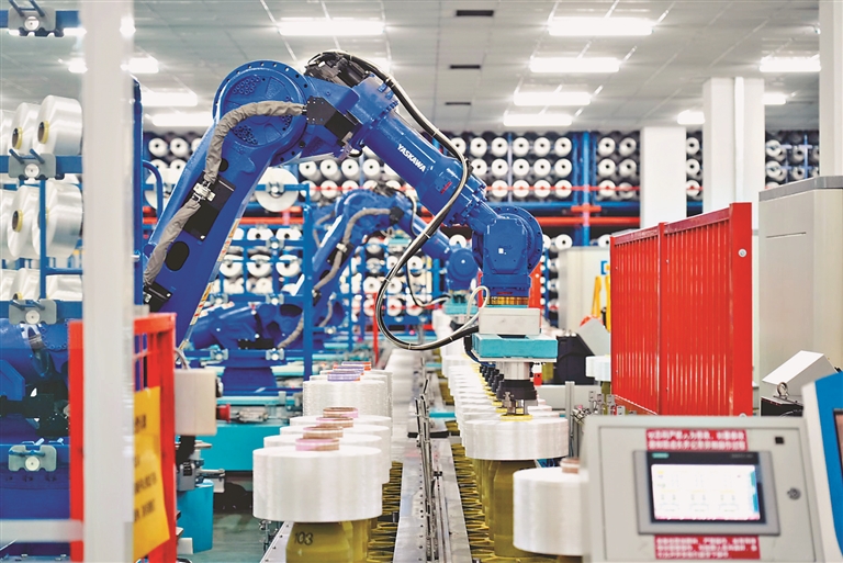 在恒力(蘇州)產業園的工業絲生產車間,充滿了科技和智能元素,通過引進世界先進生產設備,基本實現了無人化和“黑燈化”生產?!耙粋€企業能否成功,關鍵在創新、在人才”,正是在這種“創新情懷”的輻射下,近年來,恒力集團開啟了轉型升級的新征程,旗下紡織化纖企業邁入新時代,建設了多個智能化工廠、智能化車間,實現了全流程自動化生產,并獲得省市兩級“智能工廠”等多項榮譽稱號。