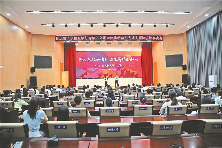 撫遠市“爭做東極好青年·立足崗位建新功”人才主題演講比賽決賽現場。