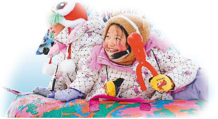 兒童在松花江上的冰雪樂(lè)園嬉戲。本報(bào)記者 張澍攝