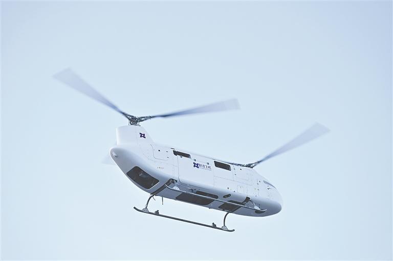鉑影T1400縱列式無人直升機(jī)在哈爾濱首航。