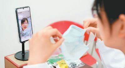 在上海市黃浦區打浦橋街道社區衛生服務中心,家庭醫生在直播中與居民就戴口罩的問題進行互動。新華社記者 劉 穎攝