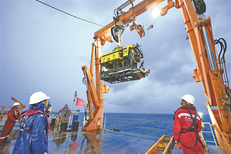“海琴”號(hào)由上海交通大學(xué)水下工程研究所自主研制,是為“中山大學(xué)”號(hào)海洋綜合科考實(shí)習(xí)船量身定制的新型高效深海電動(dòng)ROV系統(tǒng),搭載了高清攝像機(jī)、多功能機(jī)械手、探測(cè)傳感器等科考設(shè)備,具備自動(dòng)定向、懸停定位、自動(dòng)巡線等智能作業(yè)能力。