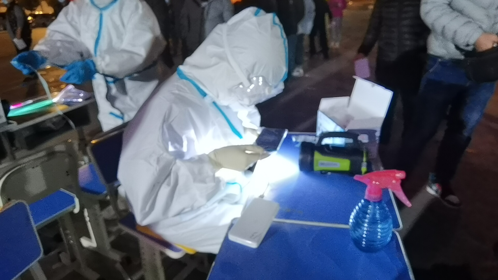 黑河站站前廣場,幾十名醫(yī)務人員、公安干警、社區(qū)工作人員和志愿者各司其職,市民排起幾條長隊,核酸檢測在有序進行。醫(yī)務人員在廣場的燈光下,嚴格按照操作規(guī)程為接受檢測的市民取樣。登記身份證號、社區(qū)蓋章要在應急燈下完成。“計劃是晚10點,如果有居民來,我們還得接著工作。”熱電社區(qū)工作人員說。