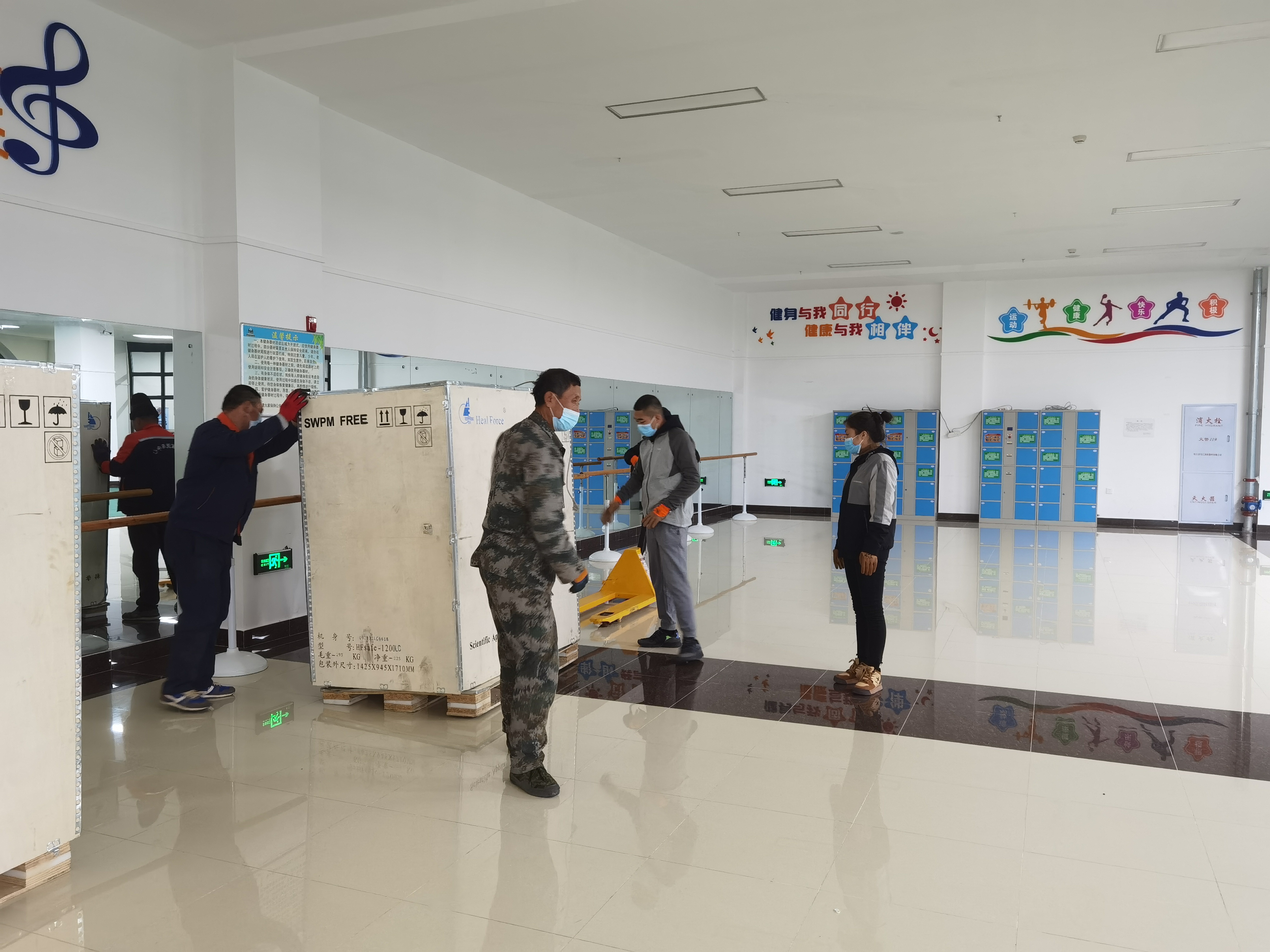 22時40分,黑河市體育館一樓,工人們正在卸剛運抵黑河的檢測實驗室設備,負壓帳篷移動實驗室將在當晚完成,28日投入使用。