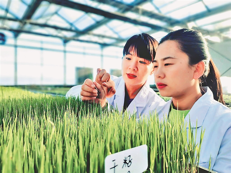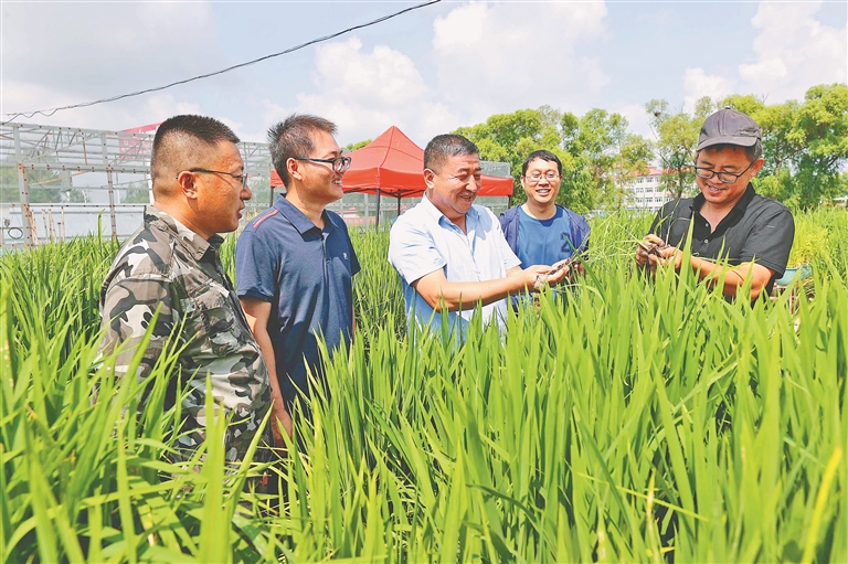 黑龍江省農墾科學院水稻研究所的專家們在徐一戎水稻科技園區(qū)工作。 王亞光攝