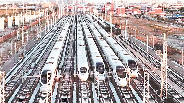 佳木斯高鐵站一列列高鐵動車整裝待發。
