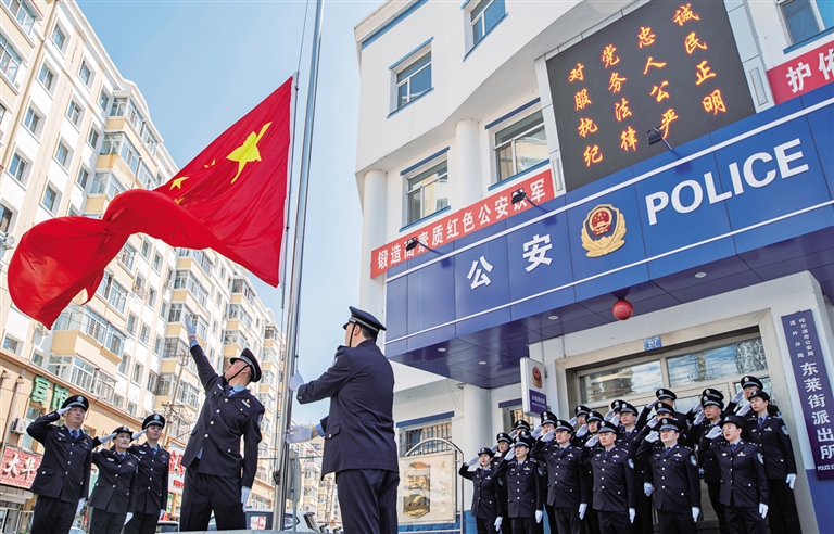 6月6日,星期一。清晨,雄壯的國歌響起,東萊街派出所民警全體立正,面向國旗,莊嚴(yán)敬禮。這樣的儀式,每周一都要舉行,寒來暑往,從未間斷。