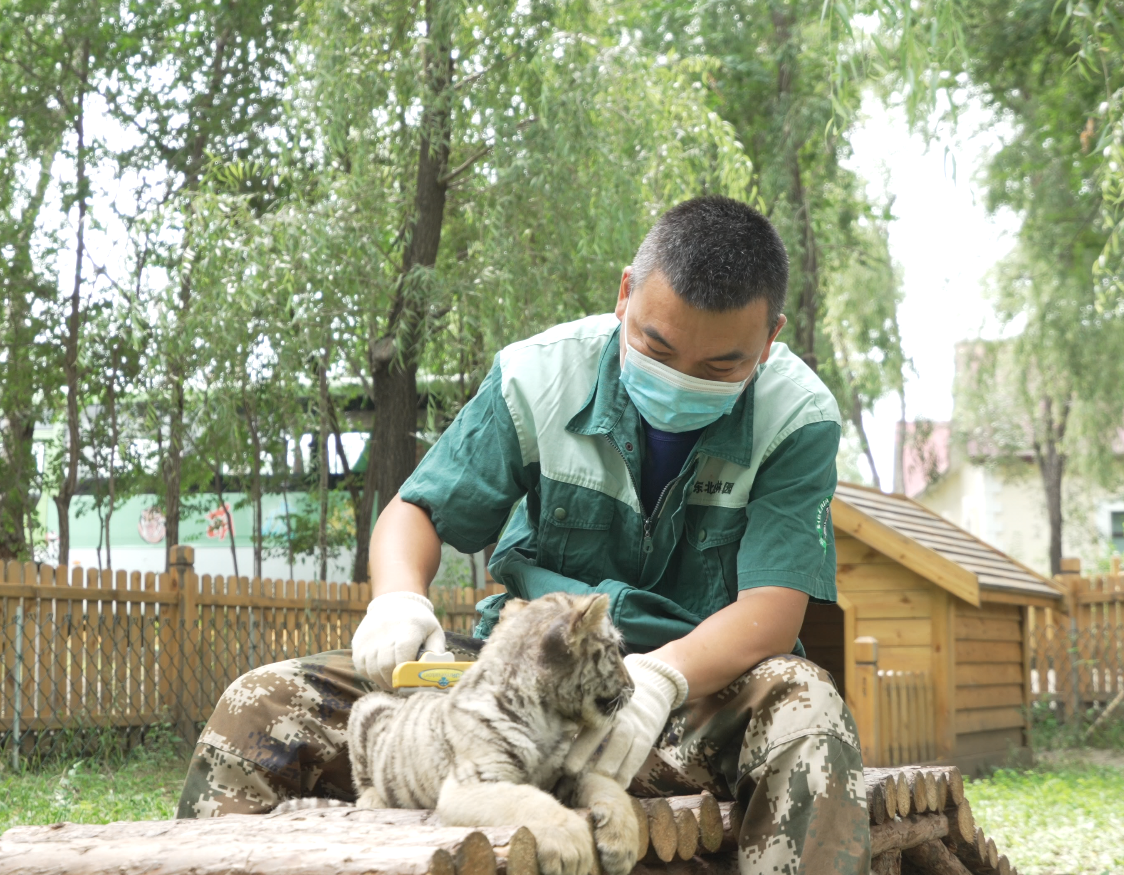 通常在母虎產子后,飼養員會對母虎的行為狀態進行觀察,如果母虎在規定時間內沒有照顧幼虎,則會將母虎與幼虎分離,由人工飼養。飼養員會定期為幼虎喂奶、排便、稱重、做記錄……像照顧人類嬰兒一樣呵護幼虎。
