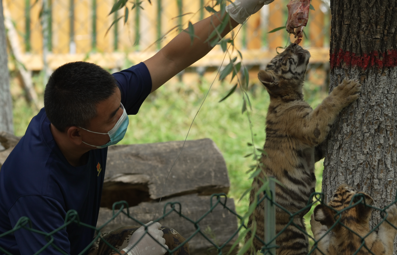 在東北虎飼養員李鑫的眼中,東北虎就像他的孩子,“工作18年,我迎接過上百只小東北虎的誕生,陪伴它們的時間比自家親人還多。”
