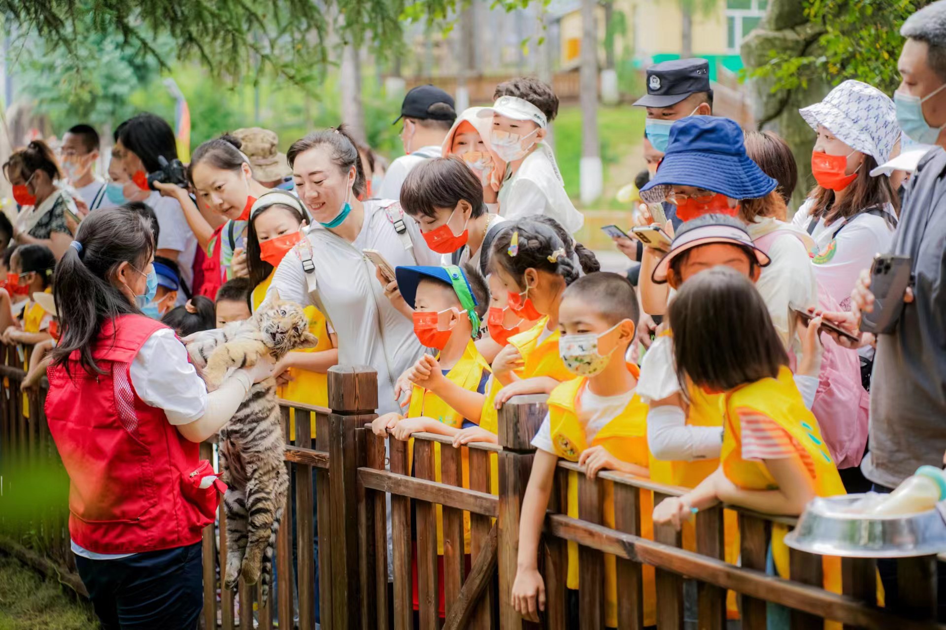 “哇,東北虎太可愛了。”“這么小的東北虎爪子就已經這么大,不愧是叢林之王!”伴隨著學生們一聲聲的驚嘆,一場以“東北虎的快樂星球”為主題的自然教育研學活動在黑龍江東北虎林園開啟。
