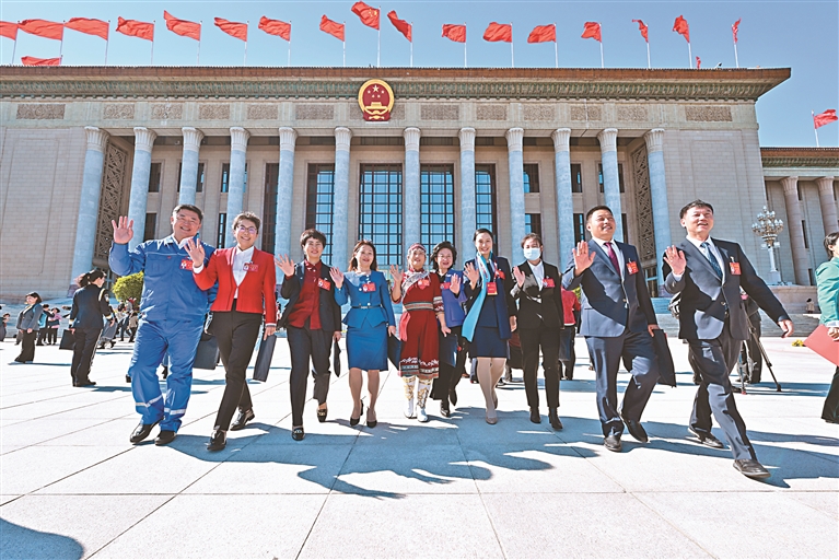 歷史性的抵達,意味著又一次歷史性的出發。中午時分,代表們走出人民大會堂,信心倍增,豪情滿懷。他們暢談參會感受和收獲,表達了高舉中國特色社會主義偉大旗幟,闊步奮進新征程的豪邁心情。