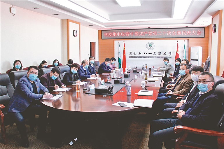 八一農(nóng)墾大學(xué)召開黨委理論學(xué)習(xí)中心組會議集中收看黨的二十大開幕會。圖片由黑龍江八一農(nóng)墾大學(xué)黨委宣傳部提供