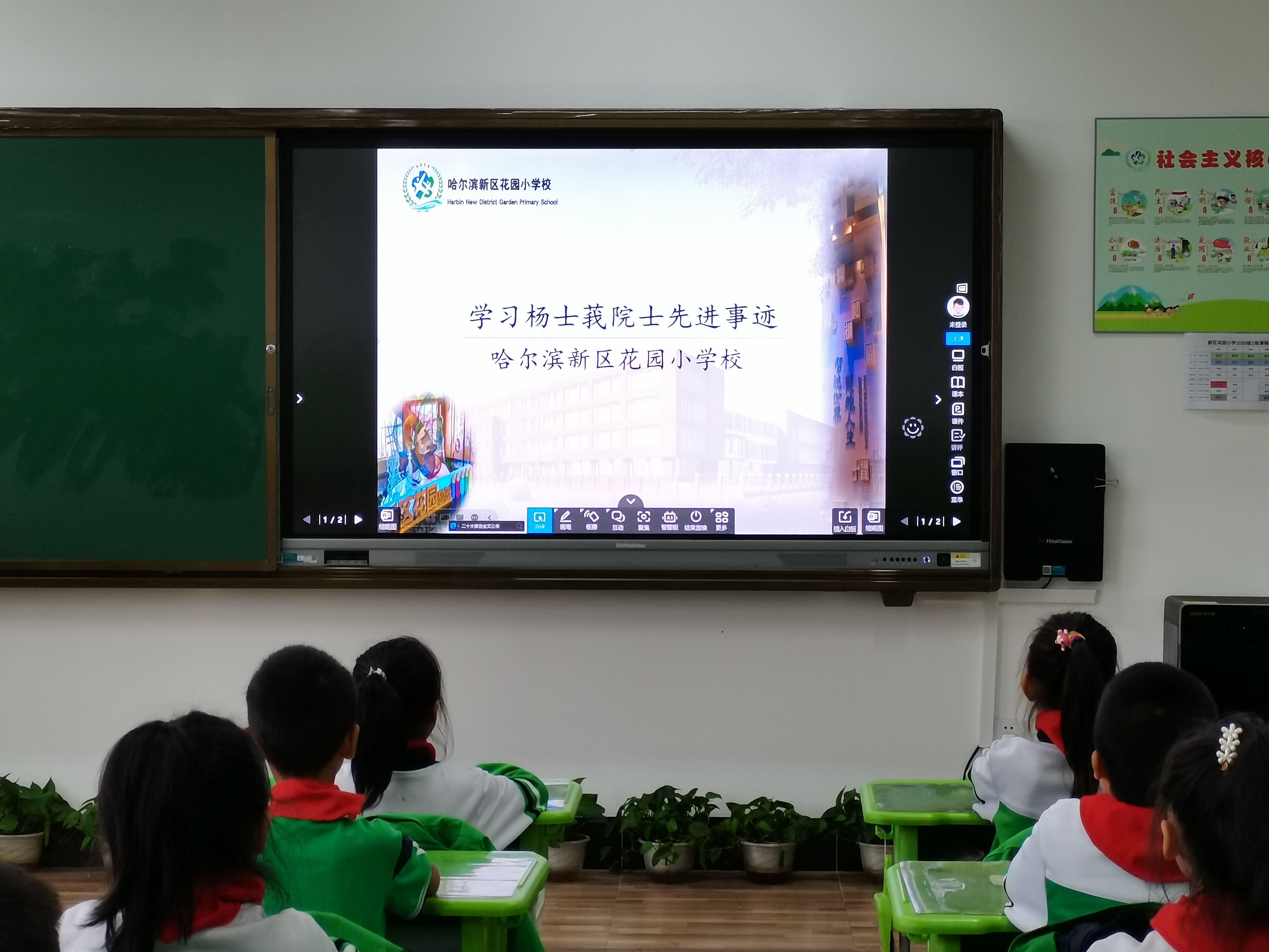 哈爾濱市新區花園小學召開《科學家——我心中的“星”》主題班會。班會中,三年級全體同學學習了中國工程院院士、哈爾濱工程大學教授楊士莪的先進事跡,向潛心鉆研的科學家致敬。