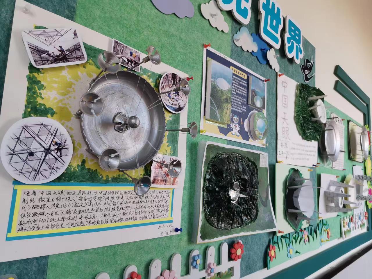 校園內,一條名為“智造未來”的中國前沿科技成果文化長廊縱貫東西,展示的是學生們用不同材料制作出中國火箭模型、天眼射電望遠鏡模型、組裝航母船模等作品,展現了學生對科學探索的動手實踐能力和對科學家的無限崇敬與熱愛之情,激發了學生學科學、用科學的濃厚興趣。