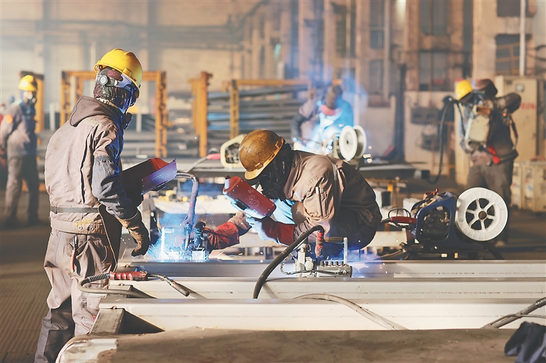 本報訊(劉廷祿 記者孫昊)近日,在中車齊車集團齊車公司貨車組裝廠房內,弧光閃爍、機器轟鳴,工人們頭戴防護鏡,手持焊槍,在操作臺前忙著進行焊接作業,爭分奪秒趕制訂單產品。