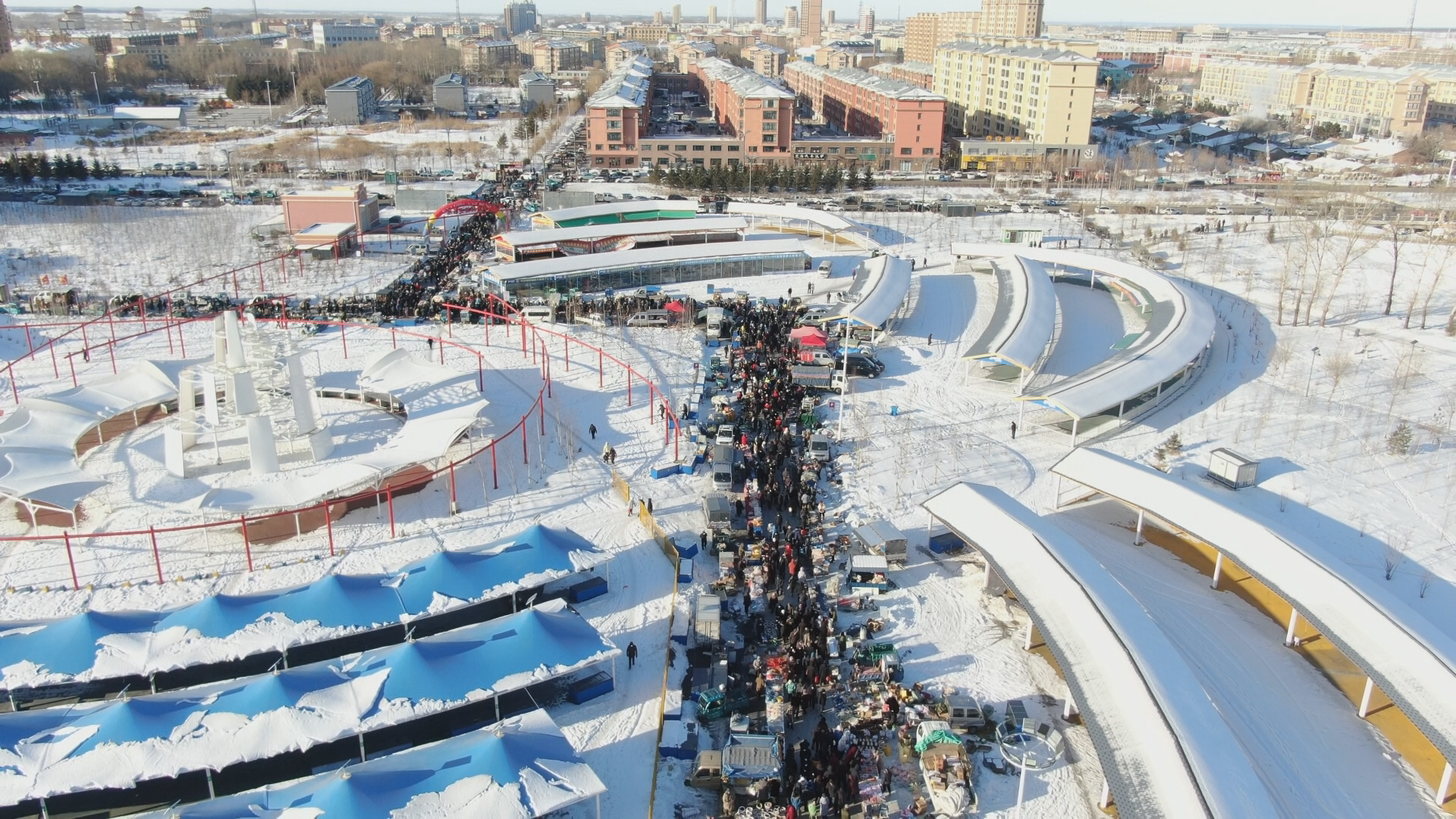 數九寒冬,室外的氣溫降至零下25度,卻絲毫沒有影響人們趕集置辦年貨的熱情,前來趕集的群眾摩肩接踵,遠遠望去,紅彤彤的對聯、福字、彩燈直映眼簾。人們駐足在一個個攤位前,開心地選購著一樣又一樣的年貨。