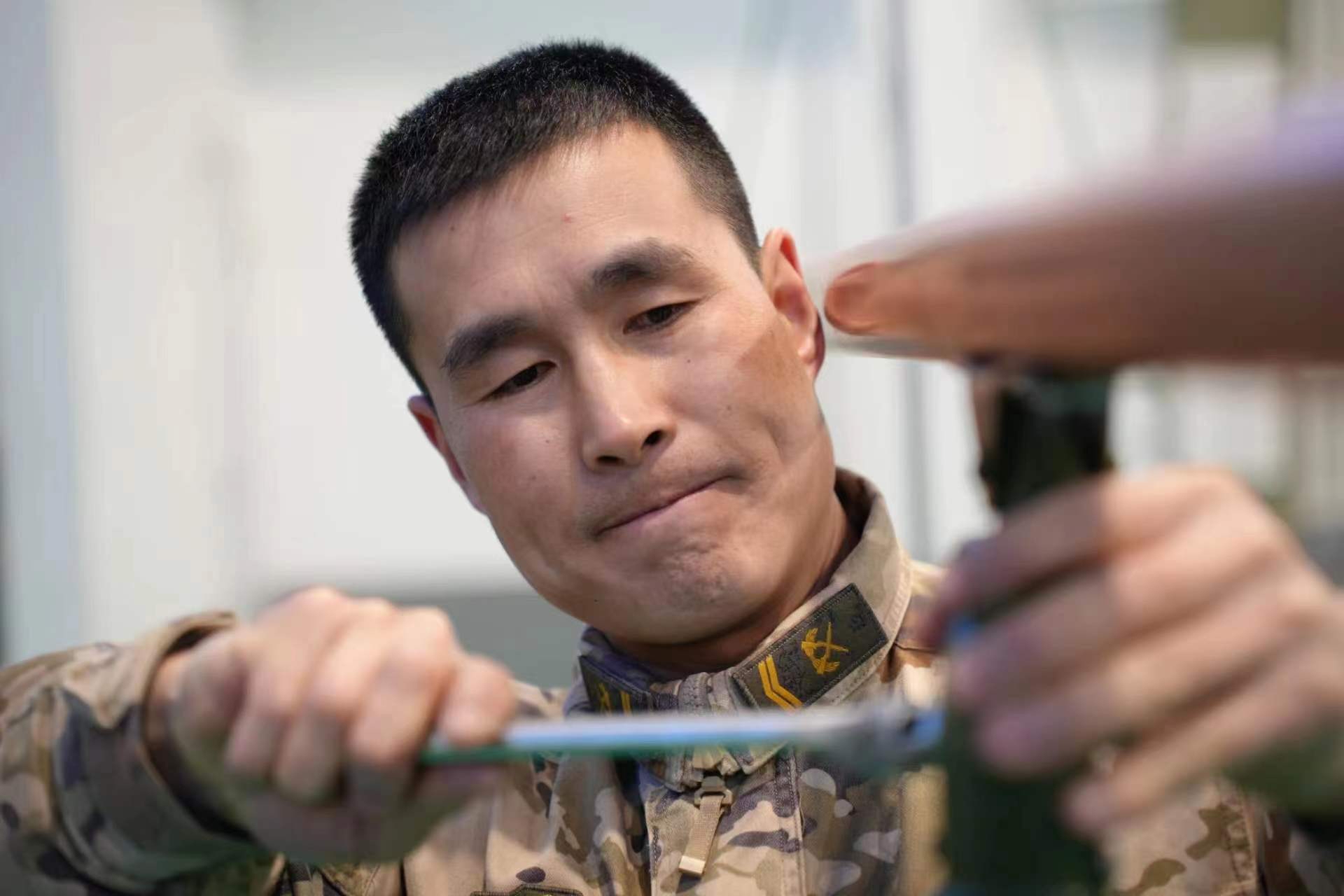 此后,修理電器、更換門鎖、疏通暖氣……無論天寒地凍,哪里有問題,哪里就有孫海明的身影。一身作訓(xùn)服,一個工具包,與汗水、泥濘為伍,與扳手、鉗子做伴,“300余次應(yīng)急搶修任務(wù),50余次‘暖心服務(wù)隊’上門服務(wù),上千次維護(hù)保養(yǎng)任務(wù)……”這一干,就是十年。3650多個日夜,孫海明手中的工具為中隊官兵解決日常起居難題,在戰(zhàn)友眼中,孫海明在,他們安心。