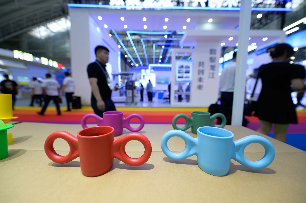 雪花“變成”冰花瓷、哈爾濱大劇院“變成”音箱、真人主播“變成”虛擬主播、紙質(zhì)臺卡“變成”電子臺卡、牙簽盒“變成”家居飾品、優(yōu)盤“變成”留聲機……6月15日上午,第三十二屆哈洽會“設(shè)計殿堂”展館剛一開放,就以“新、奇、特”的創(chuàng)意展品實力圈粉,中外展商和觀展者紛紛駐足參觀。