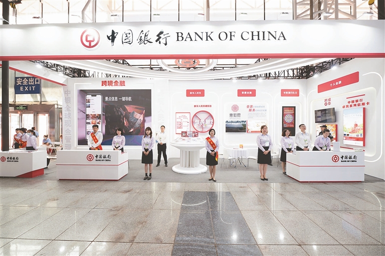 跨境金融一直是百年中行的“金字招牌”。走進會展中心中國銀行展區,最先映入眼簾的就是一塊巨大的屏幕,通過屏幕畫面,中國銀行在推動人民幣國際化進程、服務雙循環新發展格局、助力海外資金“引進來”、中資企業“走出去”等方面取得的卓越成績逐一呈現。