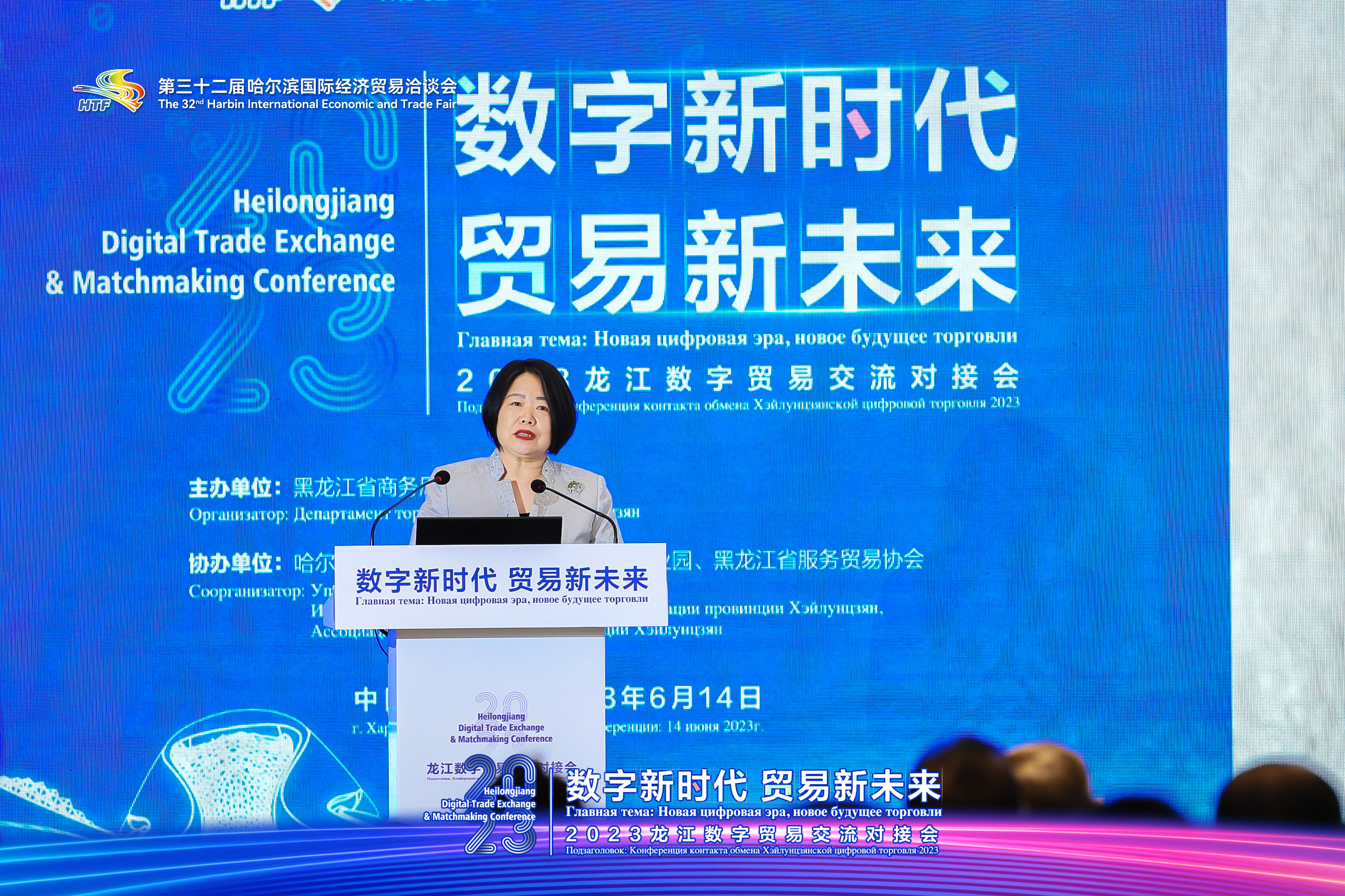 14日下午,作為第三十二屆哈爾濱國際經(jīng)濟(jì)貿(mào)易洽談會(huì)配套活動(dòng)之一,由黑龍江省商務(wù)廳主辦,哈爾濱市商務(wù)局、黑龍江省地理信息產(chǎn)業(yè)園、黑龍江省服務(wù)貿(mào)易協(xié)會(huì)協(xié)辦的2023龍江數(shù)字貿(mào)易交流對(duì)接會(huì)在哈爾濱召開。中國工程院院士、俄羅斯遠(yuǎn)東聯(lián)邦大學(xué)、哈爾濱工程大學(xué)專家與國內(nèi)外企業(yè)家代表、商協(xié)會(huì)代表等300余人相聚哈爾濱,共話龍江數(shù)字貿(mào)易新未來。