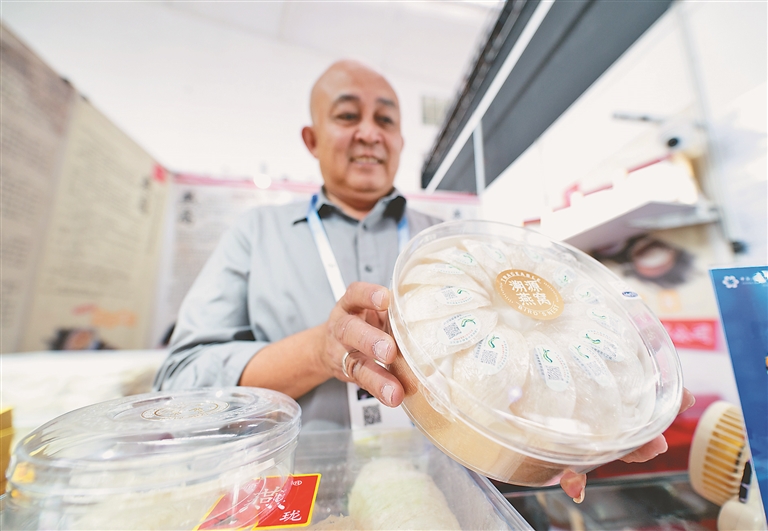 “參展2天,意向客戶已超50名!”東莞乳圓智能科技有限公司市場部經理黃春發開心地說。除了廣東參展企業收獲頗豐外,來自臺灣、香港、澳門的客商也云集于此,香港的牛肉干、臺灣的琺華彩瓷器、澳門的豬肉脯和臘腸……港澳臺僑多家企業帶來農產品、休閑食品、工藝日用品等多個領域展品亮相哈洽會,吸引了無數目光。