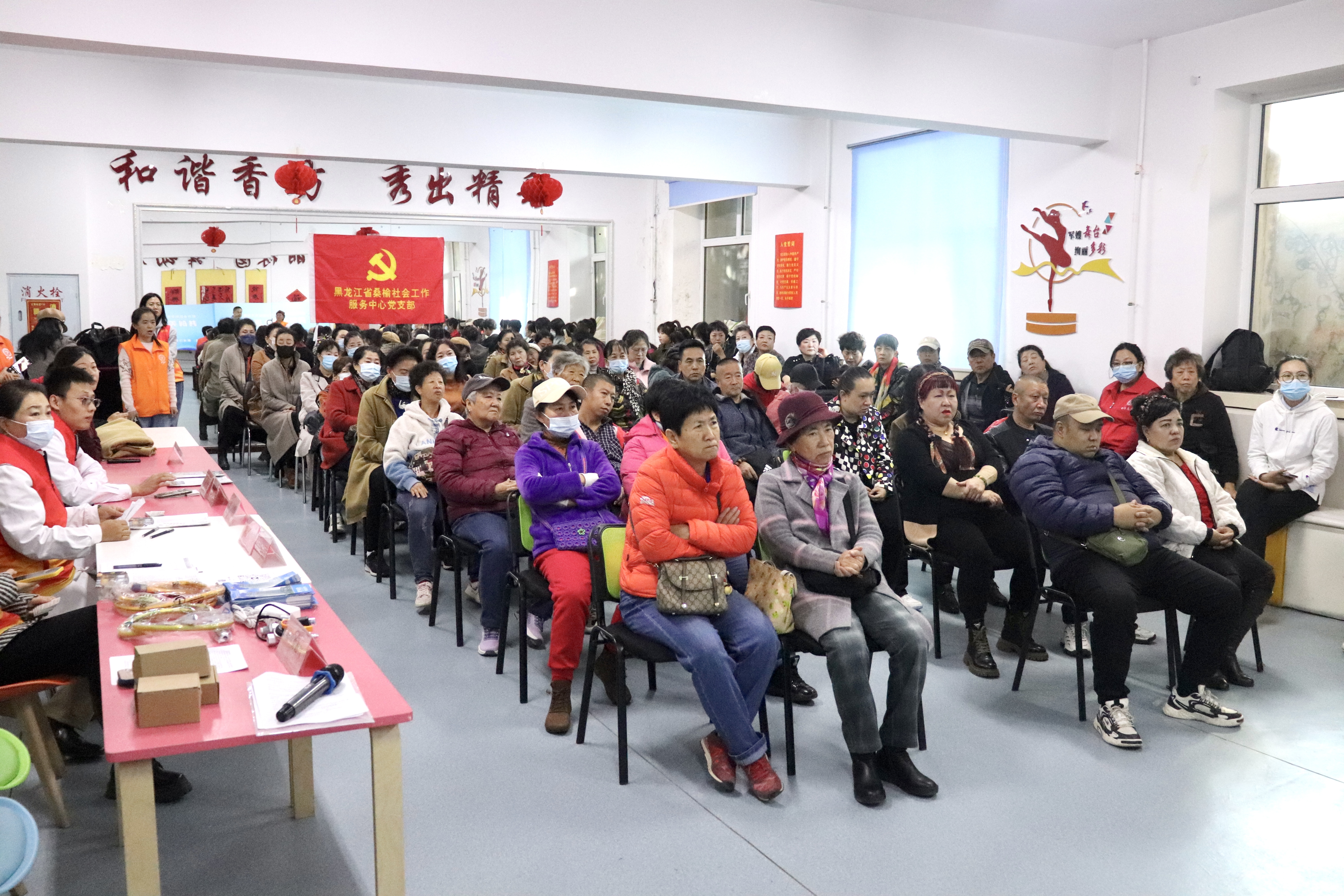19日,在“老年節”即將到來之際,由省科學技術協會、黑龍江日報報業集團聯合主辦的大型科普宣傳公益活動《共創美好生活——科普進社區》走進香坊區建筑街道,舉辦了一場以關愛老年人為主題的特殊科普進社區活動,本次活動由省民政廳協辦。來自哈爾濱市香坊區建筑街道六個社區的百余位居民在龍江社工香坊區建筑街道社會工作服務站內,與志愿者一起,以聆聽科普知識講座、學習使用智能手機、接受專家義診、看歌舞表演等歡慶節日。
