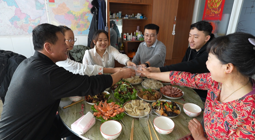 于海旭是中國鐵路哈爾濱局集團有限公司齊齊哈爾車務段訥河站運轉連結員,這是他參加工作后的第一個春節。今年春節,他把老家的奶奶、爸媽、姐姐都接到了新家,這是全家人第一次在城市的樓房里過年。