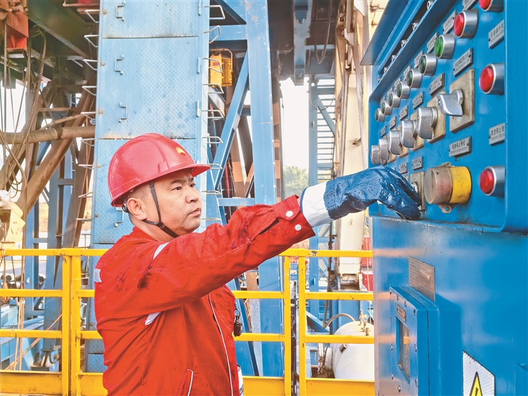 “只要鉆機的聲音一停,我就睡不踏實了。”姜洪偉的宿舍距離井場不到200米,在房間里便可以看到燈火通明的井架。天剛亮,大慶油田鉆探鉆井二公司1202鉆井隊的隊長姜洪偉就起了床。穿上紅色的工衣,姜洪偉走到井場,想看看鉆機為什么停了。