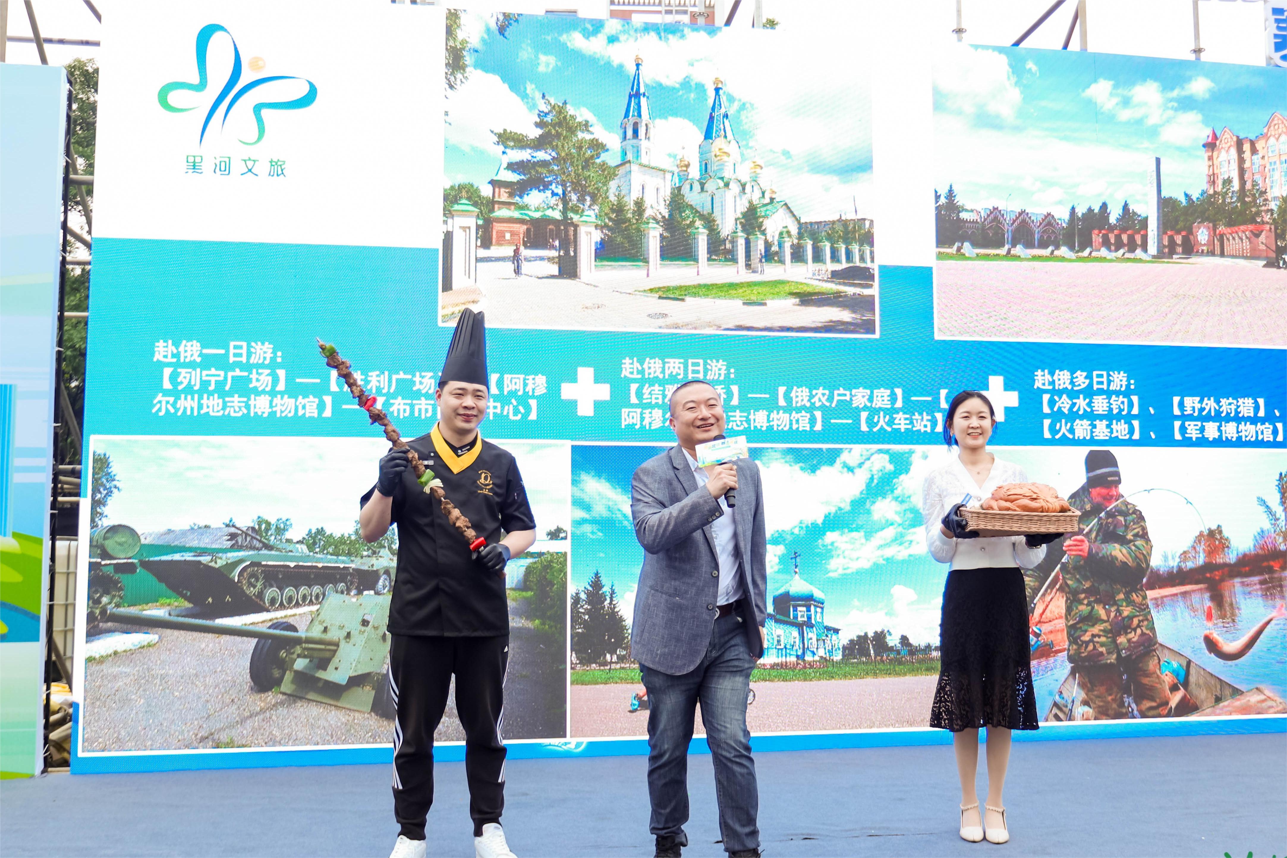 黑河市文旅推介官帶著俄式大串與大列巴與廣州市民游客互動(dòng)