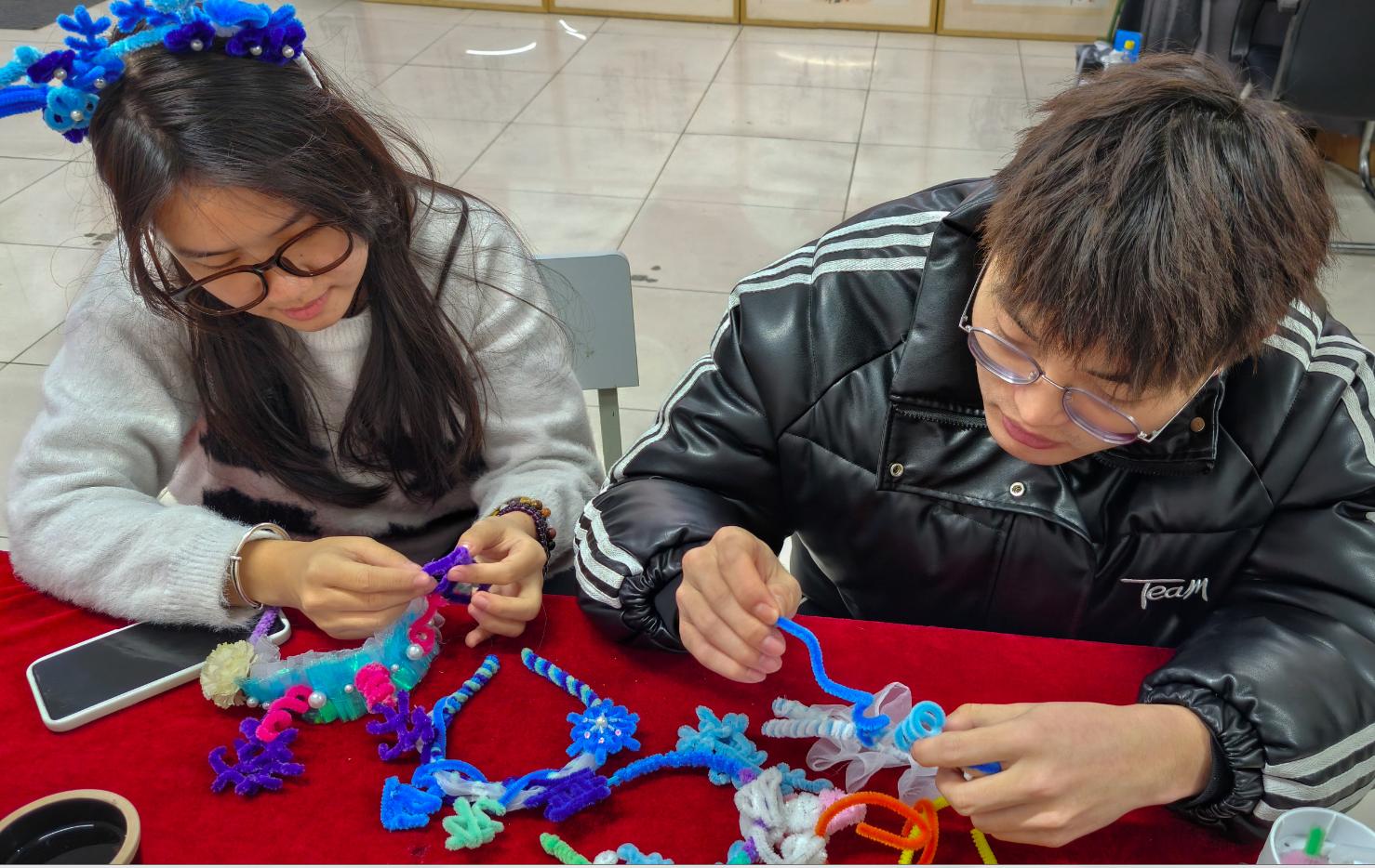 學生們以充滿趣味性的“扭扭棒”作為主要創作材料,通過彎曲、纏繞,將這些簡單的材料變成各種形態與圖案。他們在作品中巧妙地融入了冰雪元素、哈爾濱的地標建筑以及亞冬會的相關標識,每一件作品都充滿濃厚的地域特色。