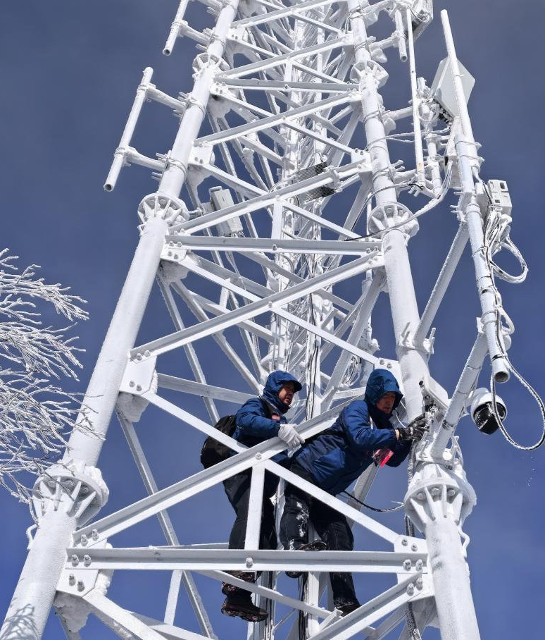 黑龍江聯通工作人員檢修基站(圖為黑龍江日報資料圖片)
