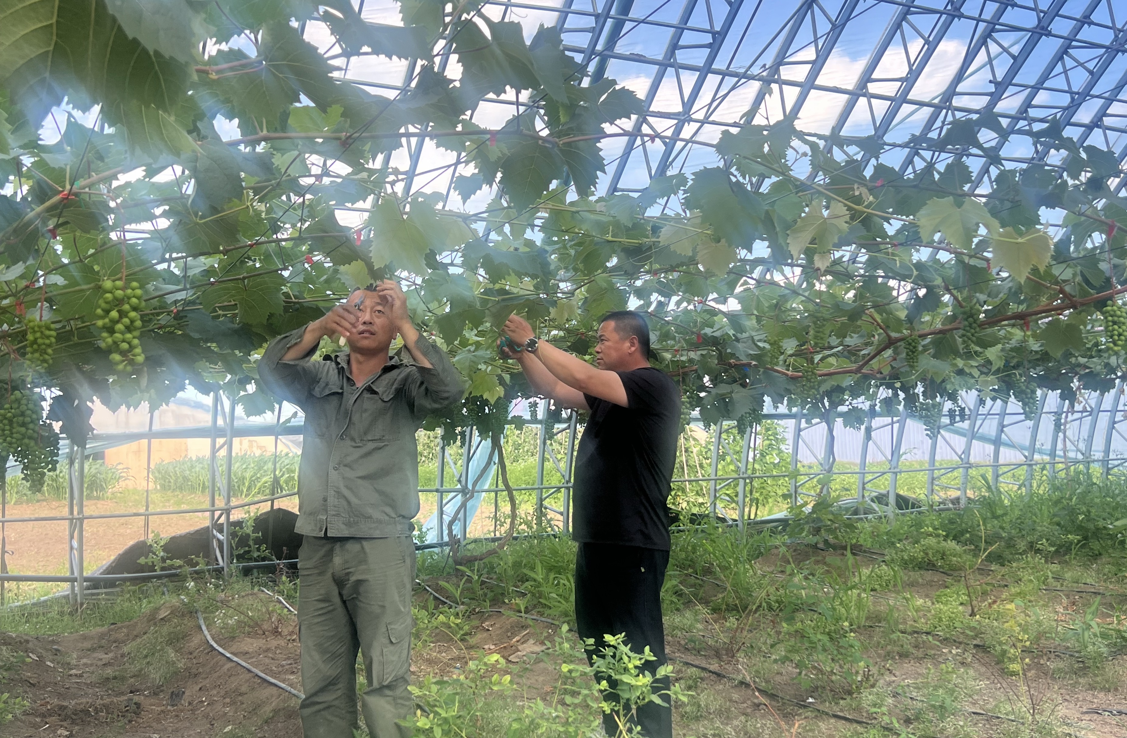 近日,記者來到位于同江市三村鎮三村村的綠園采摘基地。基地內一排排葡萄架下,串串綠色的葡萄長勢飽滿,粒大肉厚;藍莓果黑黝黝的惹人喜愛,沉甸甸的果子把藍莓枝子壓“彎”了。三村村的農民技術員王澤軍正給葡萄剪枝。王澤軍說,今年秋天葡萄能是個大豐收,畝產3000多斤,市里好幾家商超都預訂了。“8月初藍莓開始采摘銷售了,今年藍莓果汁充足,也能賣上好價。”王澤軍說。