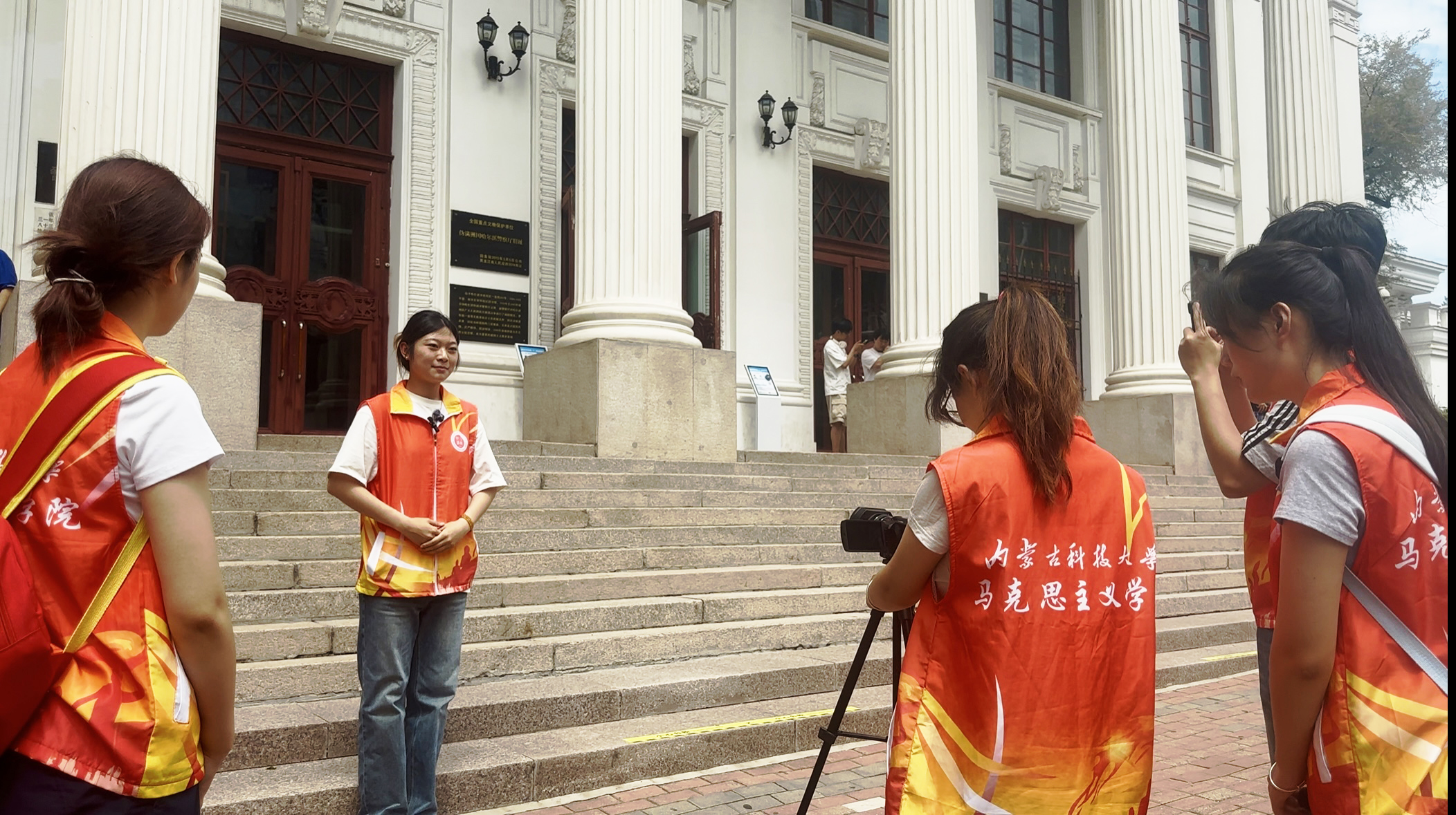 來自內蒙古科技大學的學生們,在東北烈士紀念館門前拍攝愛國主義宣講視頻