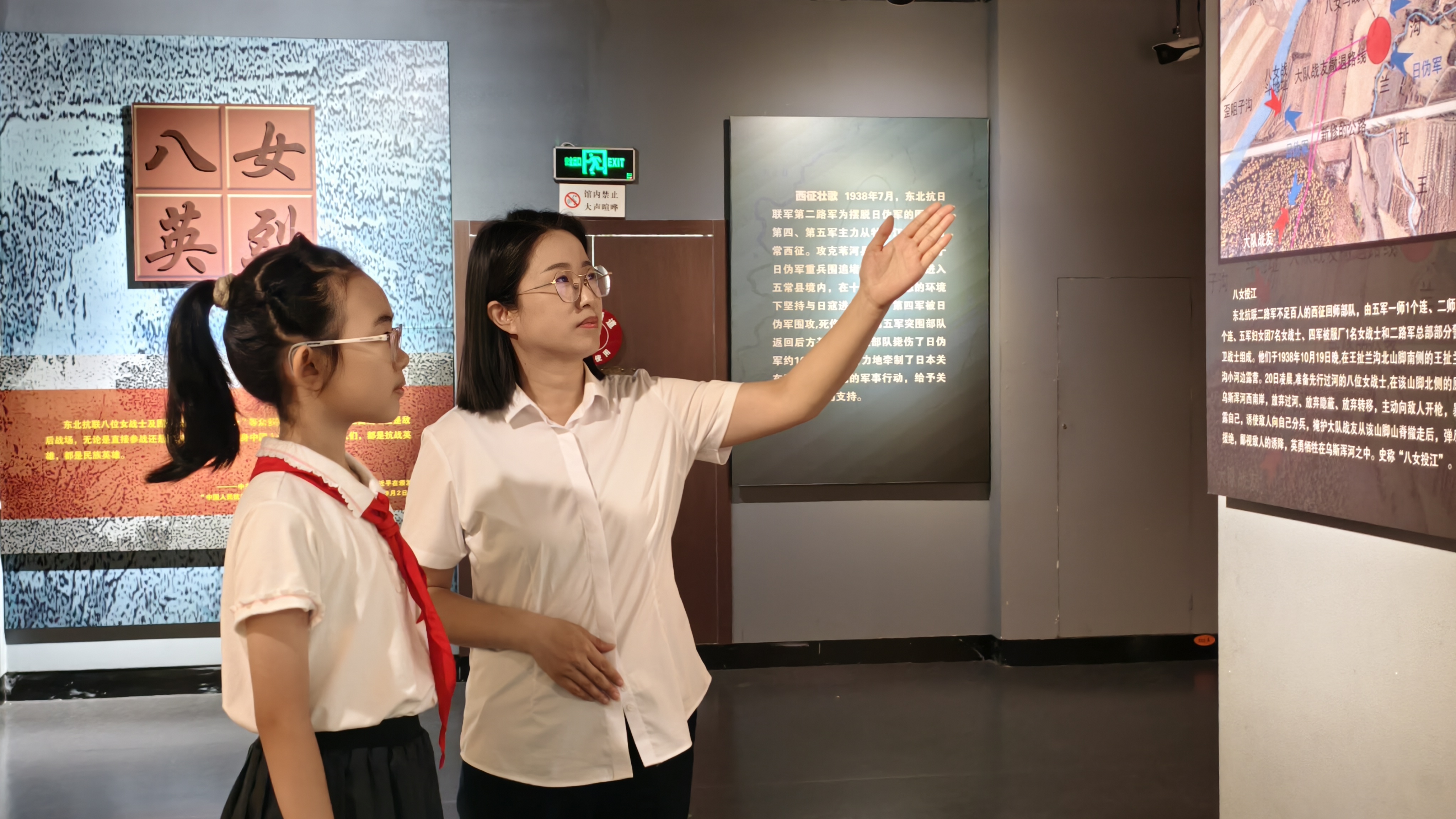 在展館內,牡丹江市博物館和烈士紀念館講解員王娟正帶著“紅領巾宣講員”了解八女投江的故事。“每次講起這段歷史,我都特別難過,她們用生命告訴了我們,什么是勇敢,什么是愛國。我想讓更多的同齡人知道,現在的生活來之不易!我們要好好學習,將來報效祖國,不辜負她們的付出……”來自牡丹江立新實驗小學的“紅領巾宣講員”紀佩含說。