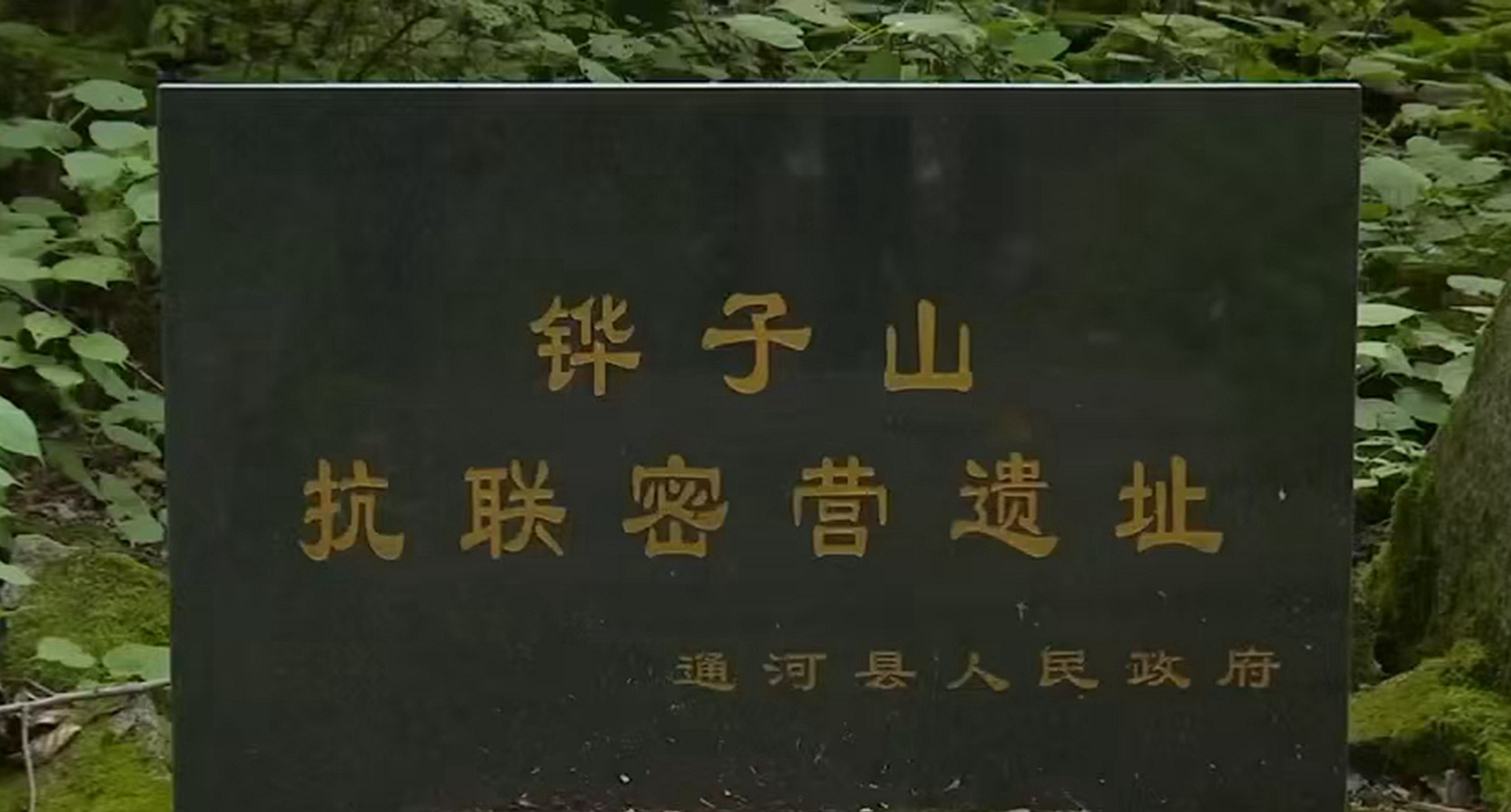 從通河縣城出發,驅車北行15公里,岔林河西岸密林深處。順著山路上行不遠,青松翠柏環抱中,一塊醒目的黑色石碑上,“鏵子山抗聯密營遺址”九個大字莊嚴肅穆。