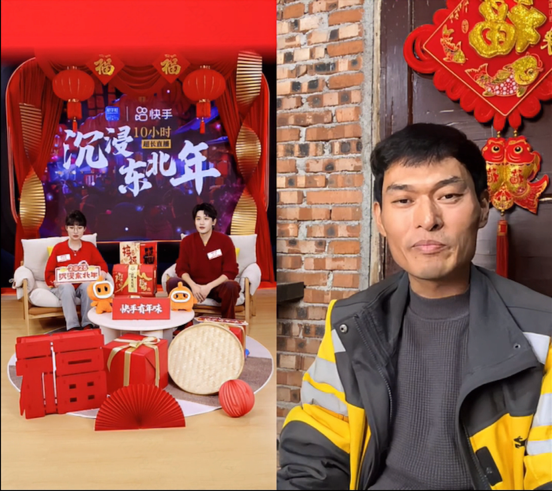 熱鬧過大年,還得看東北。「沉浸東北年」整場直播由眾多快手優質創作者串聯起來,從揭秘東北冬捕傳統到走進包羅萬象的蒲河大集,從進村吃席到連麥“炫飯”,從公園里舞動新春到冰雪之上動感健身……在不同場景的切換中,通過鏡頭將東北的年俗原汁原味地呈現,同時也把東北人的樂觀豪爽傳遞給了直播間的各位老鐵。這場長達10個小時的直播總觀看人次超過2.3億,直播總點贊量超過190萬,看直播尋年味成為越來越多人打開春節的新方式。