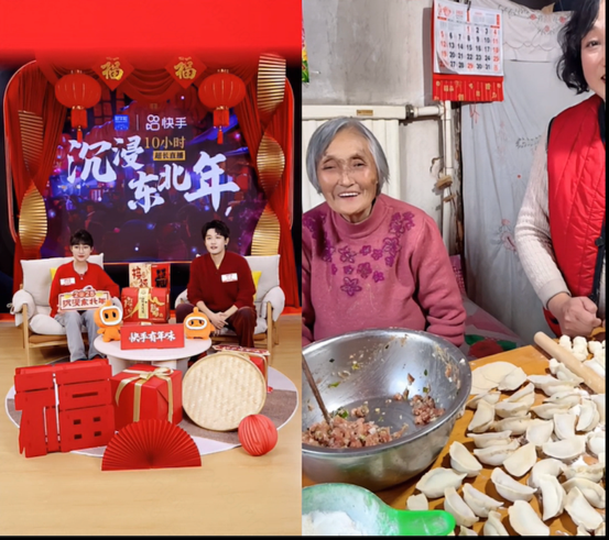 快手「沉浸東北年」10小時超長直播,從普通人的視角切入,真正走到人們的生活中去,將典型場景串聯,多維度呈現出了東北地區地道、熱鬧、溫暖的過年圖景。不難看出,此次直播策劃正是基于快手一直以來所打造的充滿煙火氣的社區,讓直播間的用戶在沉浸式觀看的同時,也能更好地產生情感共鳴,喚起記憶里的年味。