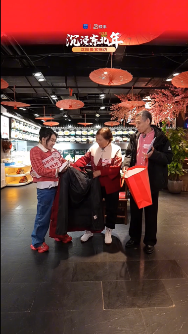 過年的儀式感,離不開人間煙火氣,幾道家常菜,家人圍坐就是年。在快手「沉浸東北年」直播中,脫口秀演員李波和64歲勇闖脫口秀的@山山單口喜劇 邀請@麥子阿姨 來東北做客,開啟了一場沈陽美食體驗,大拉皮、熏雞架、可包一切的飯包……讓@麥子阿姨 贊不絕口,也饞壞了直播間的用戶。