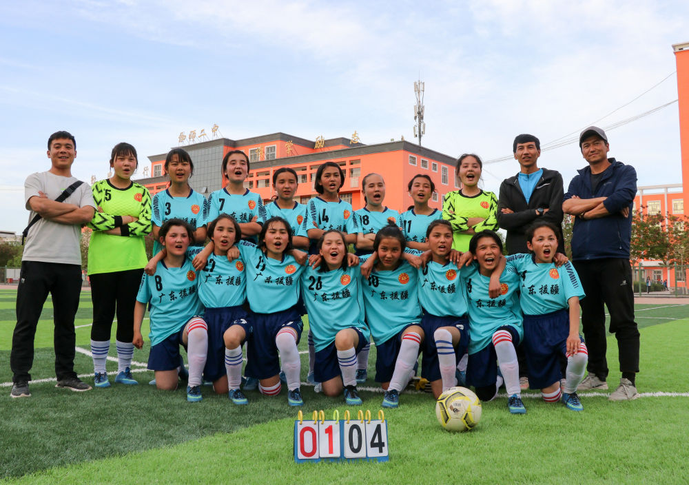 這是新疆伽師縣第二中學(xué)女子足球隊(duì)合影(4月24日攝)。2020年5月,廣東援疆指揮部幫助伽師縣第二中學(xué)組建學(xué)校第一支女子足球隊(duì),并派遣專業(yè)足球教練,捐贈(zèng)全套足球裝備,修建訓(xùn)練場(chǎng),全方面提供人力物力保障。新華社發(fā)(楊昊 攝)