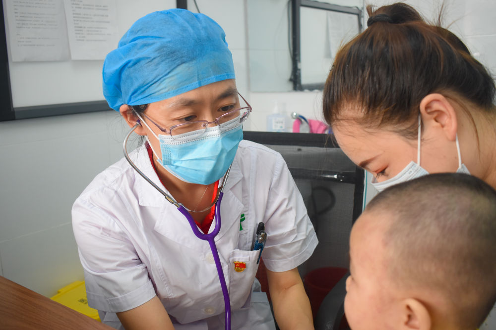 在新疆昆玉市人民醫(yī)院,北京援疆醫(yī)生于麗娟在接診患兒(7月16日攝)。新華社發(fā)(何丹 攝)